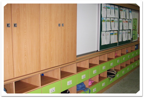 圖書櫃及教具櫃的設置,以開架式的設計,增加學童對班級圖書的使用率,提升閱讀能力。教具整齊陳列於教具櫃內,方便師生取用,提高教學效果。