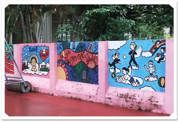 ↑籃球場圍牆彩繪。